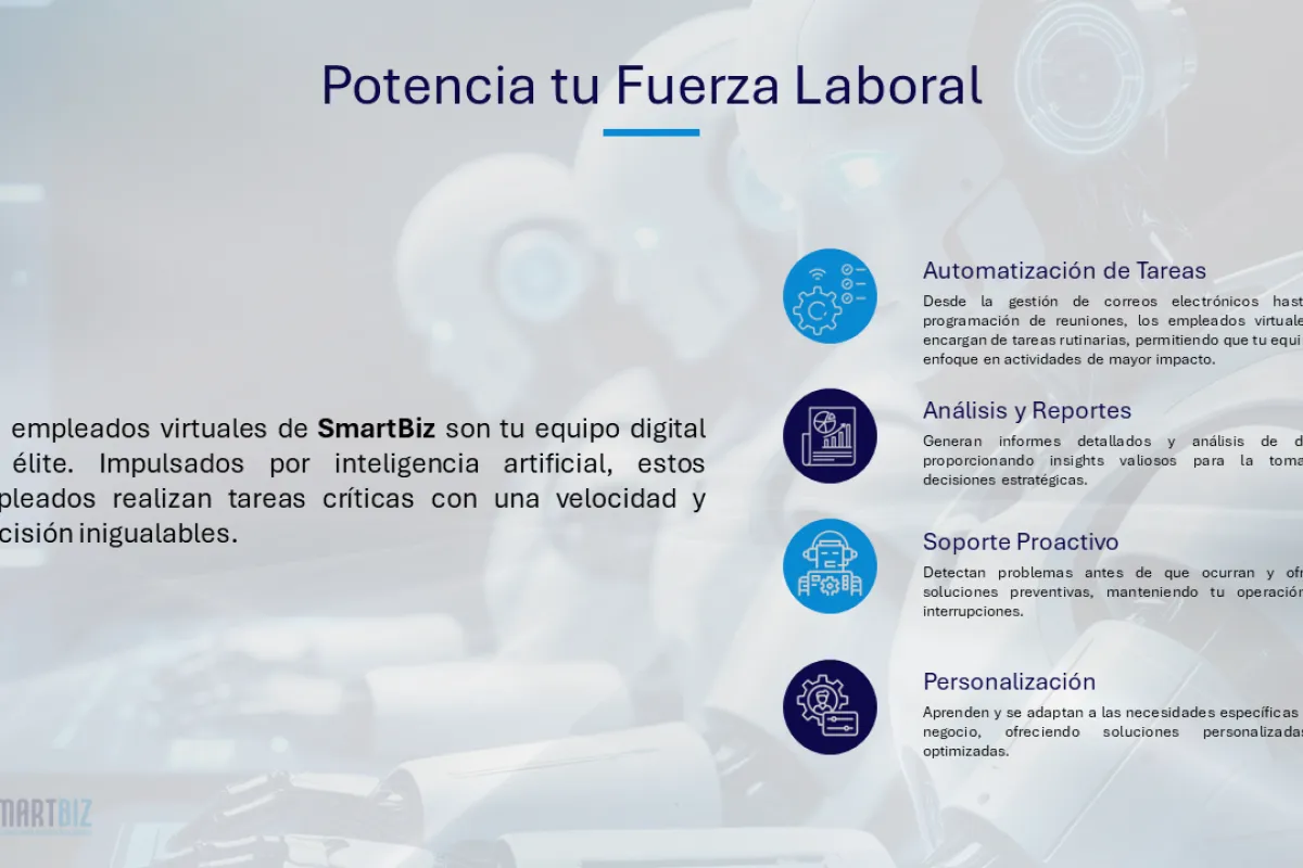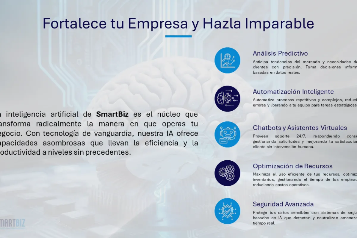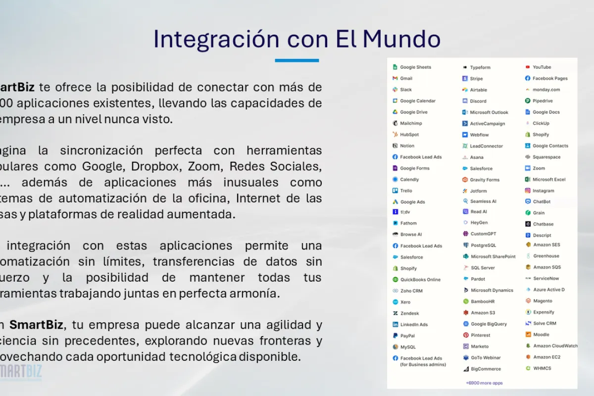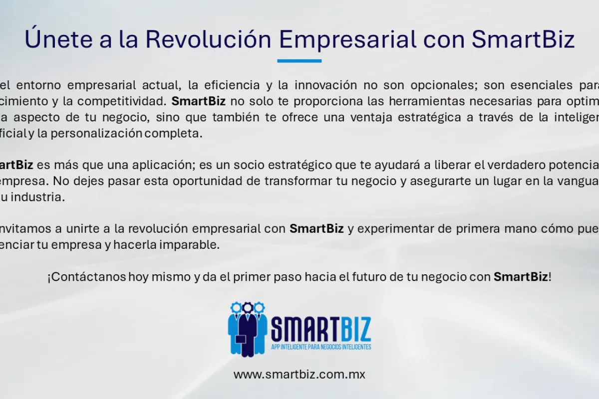SmartBiz es la única plataforma empresarial que agrupa ERP, CRM, e-commerce, CMS, aplicación móvil e inteligencia artificial en un único entorno 100 % personalizable.
